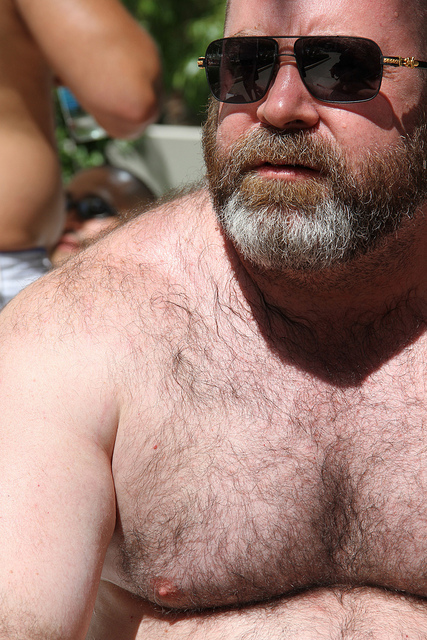 Bear: شخص ممتلئ الجسم، أشعر، يطلق لحيته أو شاربه.