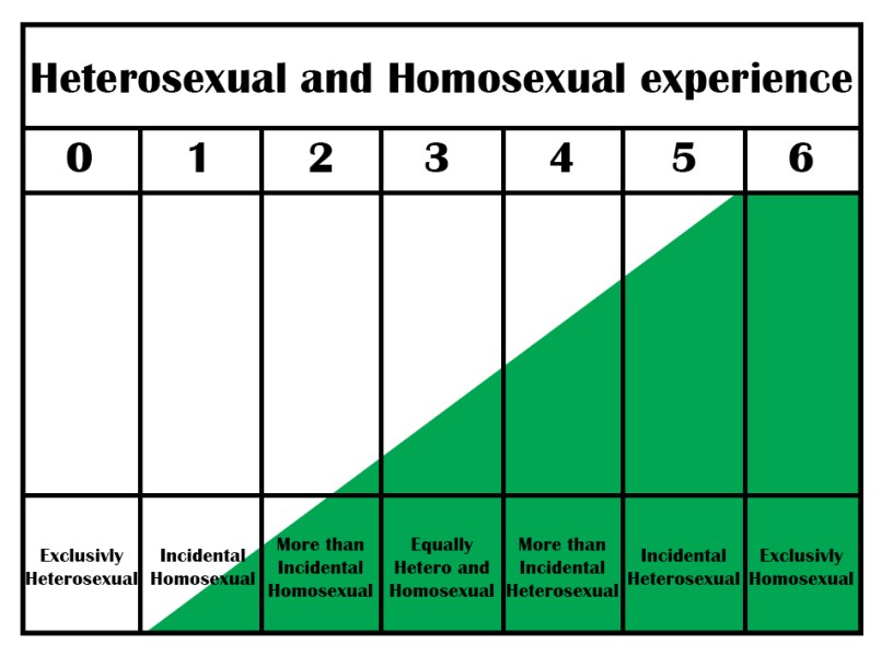 عقب هذا الكلام أنشأ العالم كينزي سلّماً أو مقياساً وضع فيه الأشخاص في 6 درجات وفقاً لميولهم: